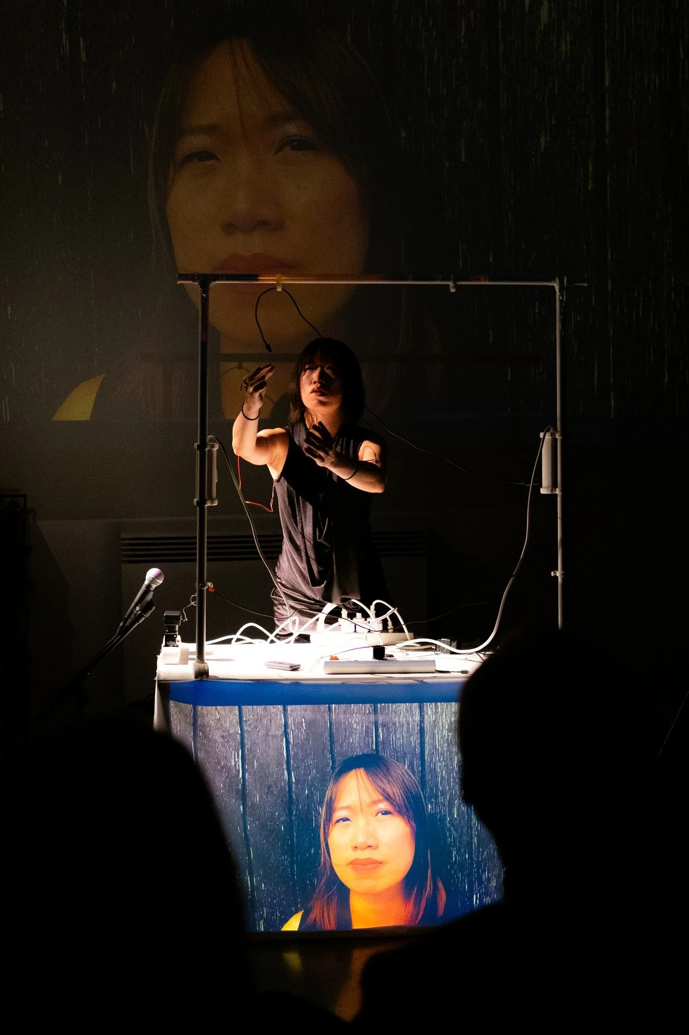 1 performer - doubling on voice playing on various discarded phonechargers and electrical sockets. w. Tape, electronics and video.